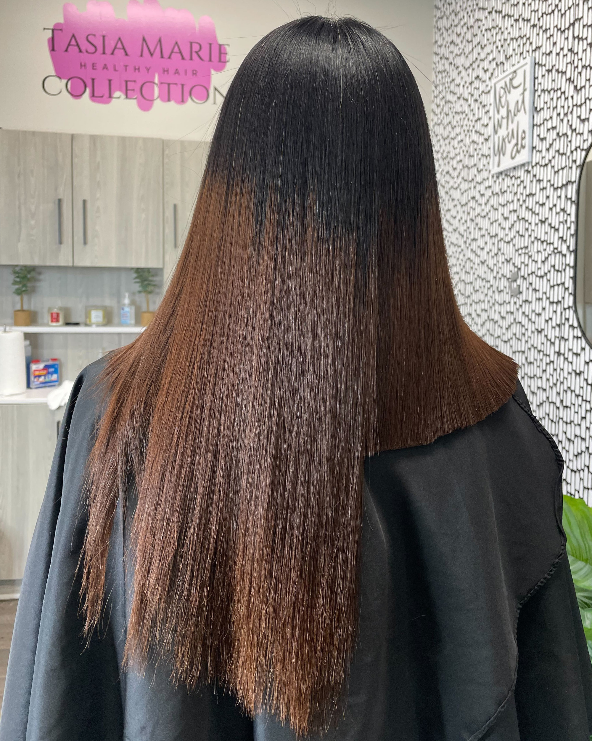 Lightweight K-Tip extensions installed with care to protect your natural hair and maintain a silk-press look.
